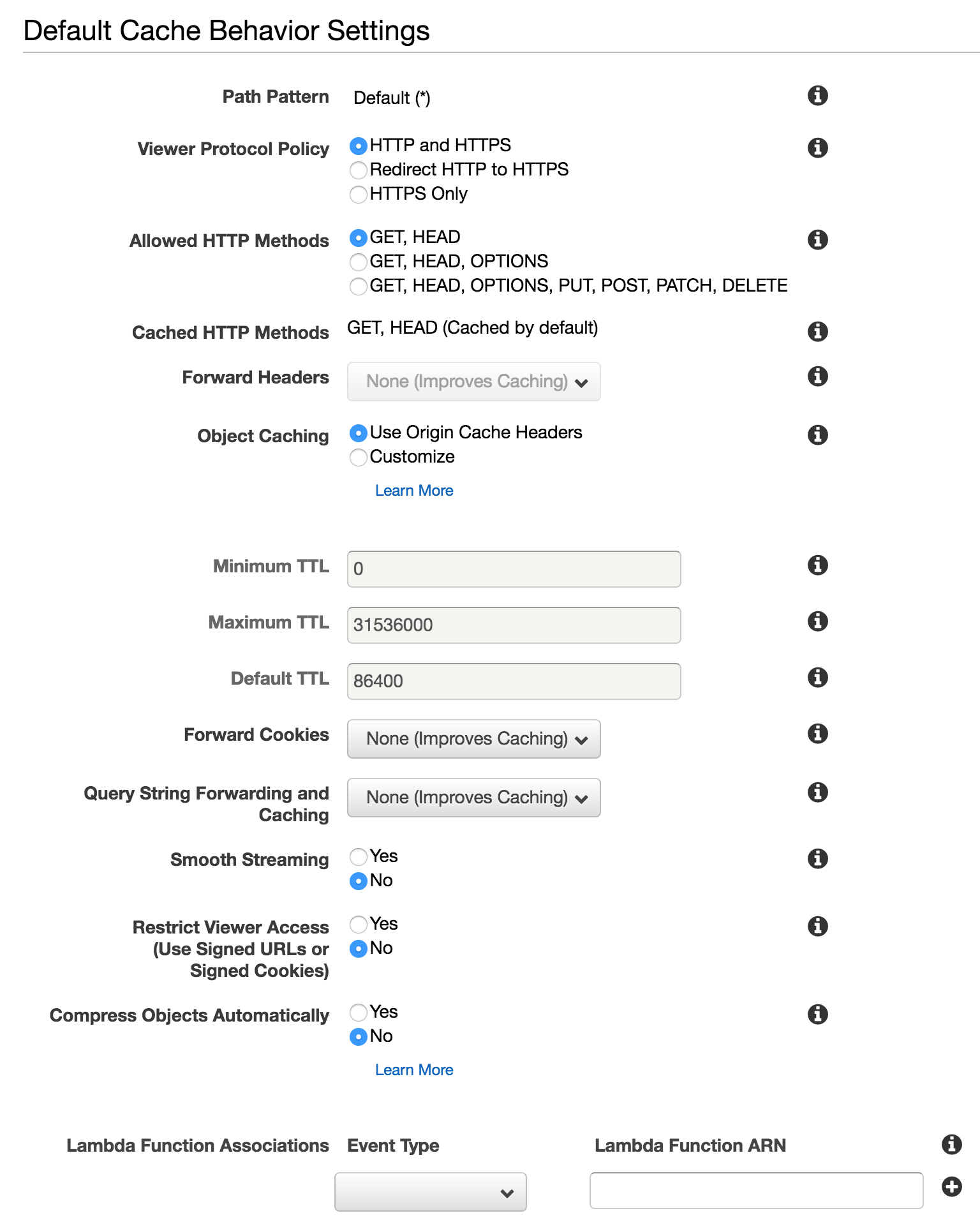 Fill in the “Default Cache Behavior” Section like so: